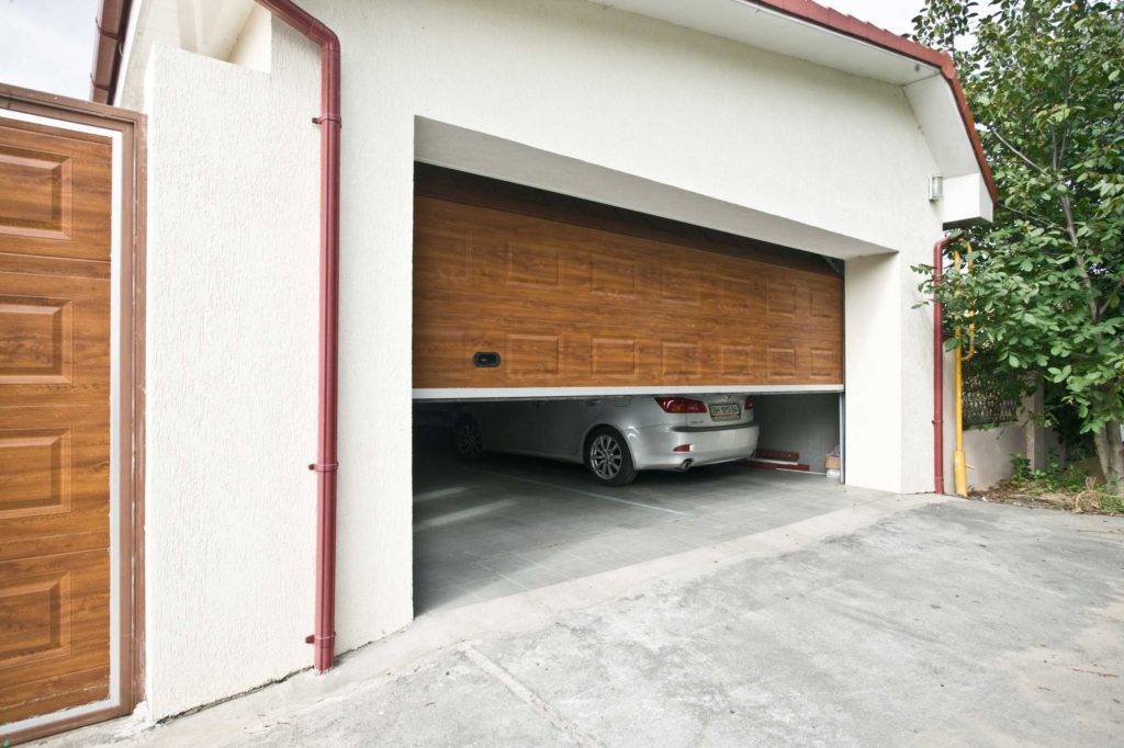 Ворота для гаража возле частного дома можно сделать в виде отдельного въезда для каждого автомобиля или одного общего. При выборе второго варианта ширина проема достигает 5 м, поэтому перемычка над ним должна быть достаточно прочной, чтобы не прогибаться под тяжестью конструкции.