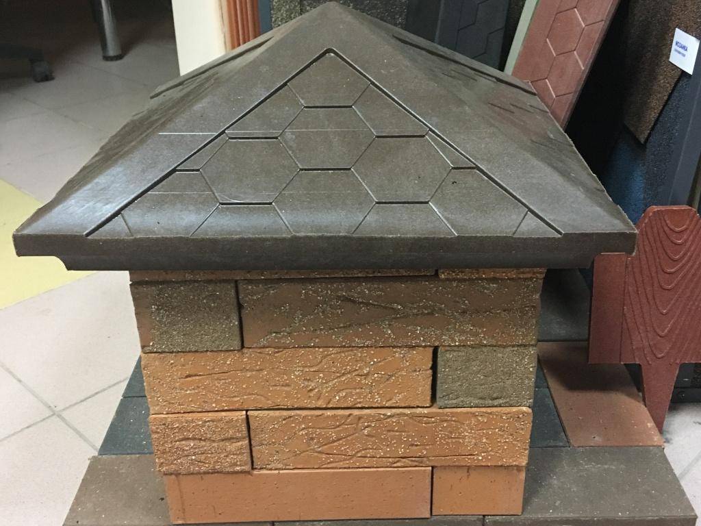 | Колпак из полимерно-песчаного композита «Гибкая черепица» | На столб 2×2 кирпича | 535×535×43 | 1490 |