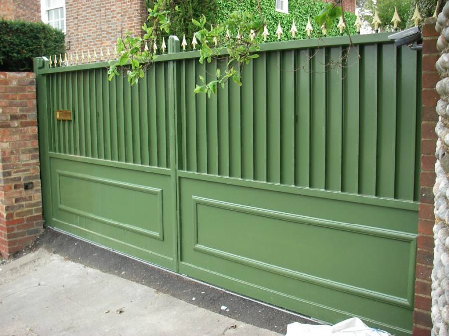 - Готовые ворота обезжиривают, наносят слой грунтовки, а затем покрывают краской.
