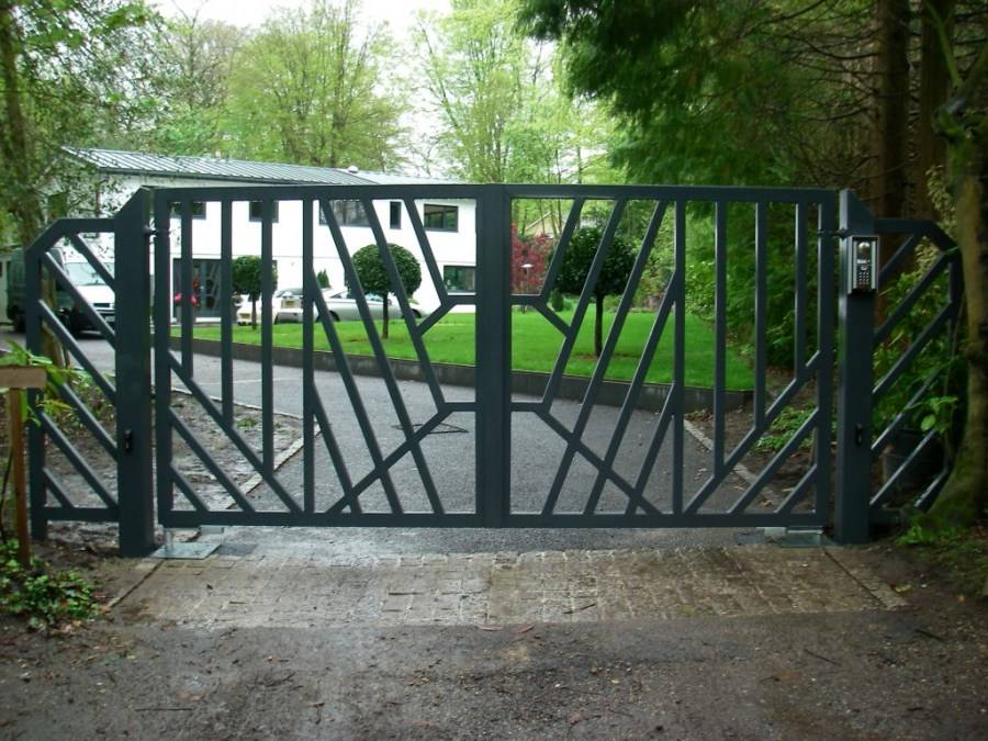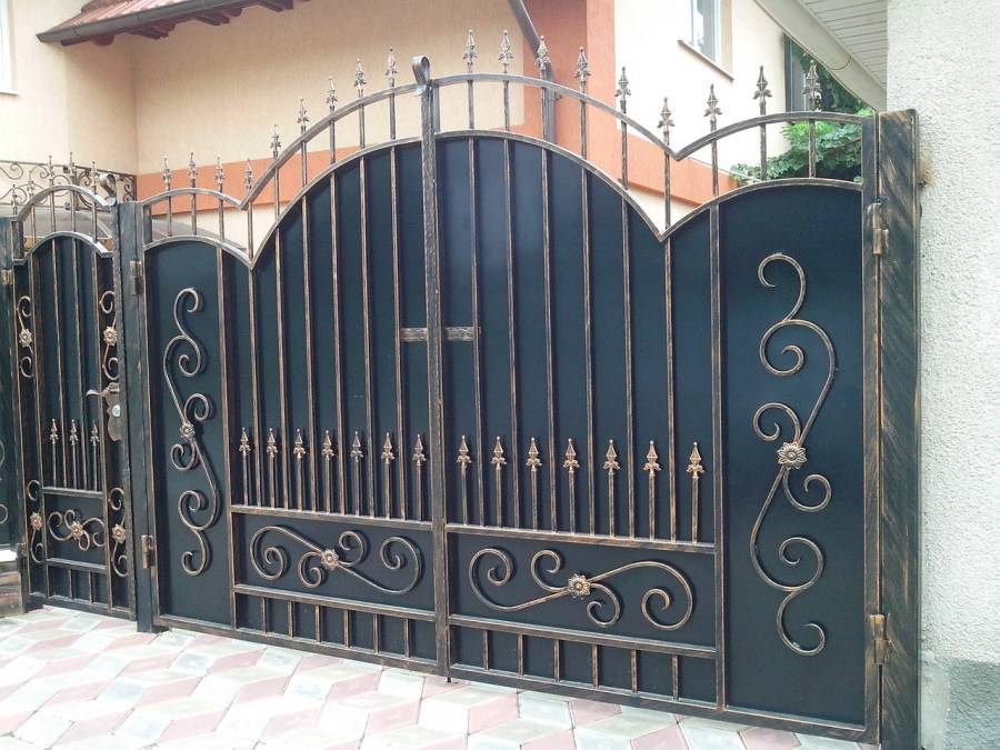 Металлическую конструкцию тоже вполне реально сделать своими руками. Даже при отсутствии навыков ковки, вы можете украсить полотно фигурными элементами, которые продаются в специализированных магазинах. Их просто приваривают на ровное полотно.