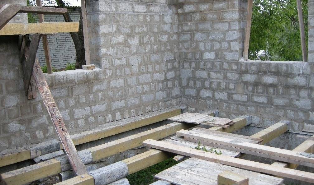- Когда бетонная обвязка застынет, необходимо начать укладку перекрытия.