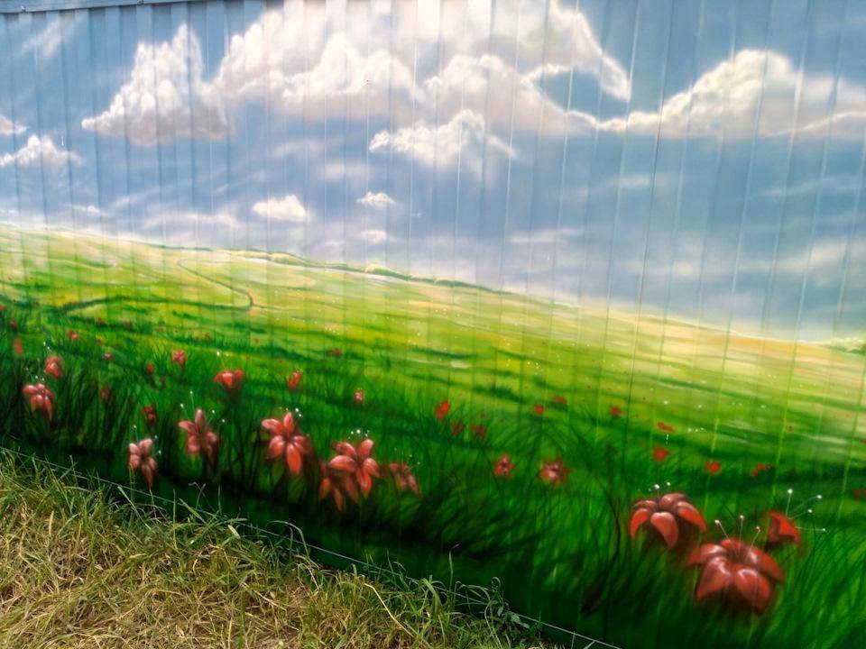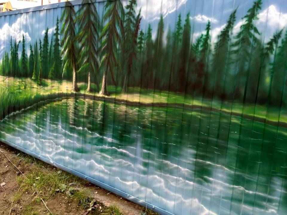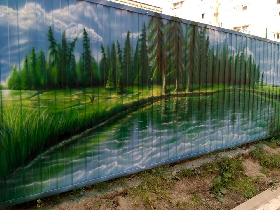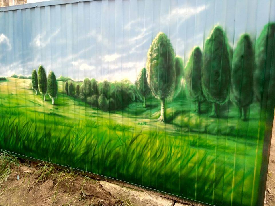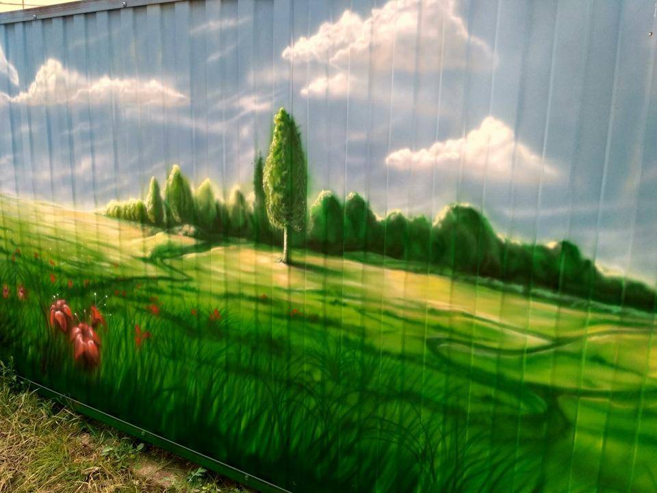 Изображения на заборе, выполненные с помощью аэрографии — достаточно недешёвое удовольствие