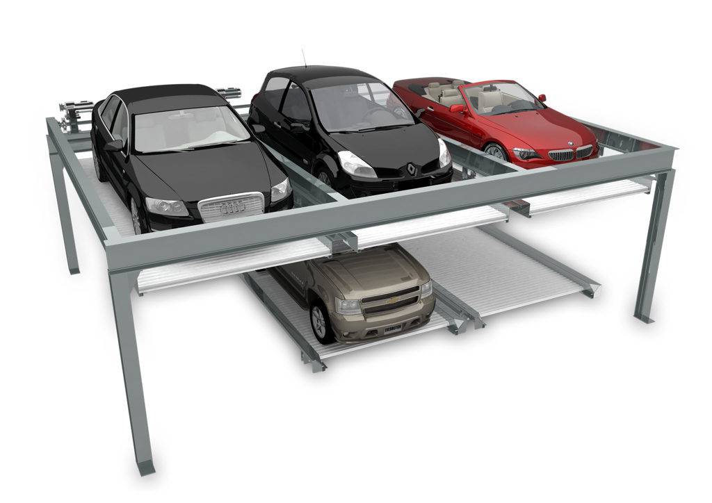 Данный вид подъемников можно назвать полноценным автоматическим подземным гаражом. Это новое устройство применимо в тех случаях, когда наземная площадь сильно ограничена или ландшафтный дизайн не позволяет строительство обычного помещения для машины.