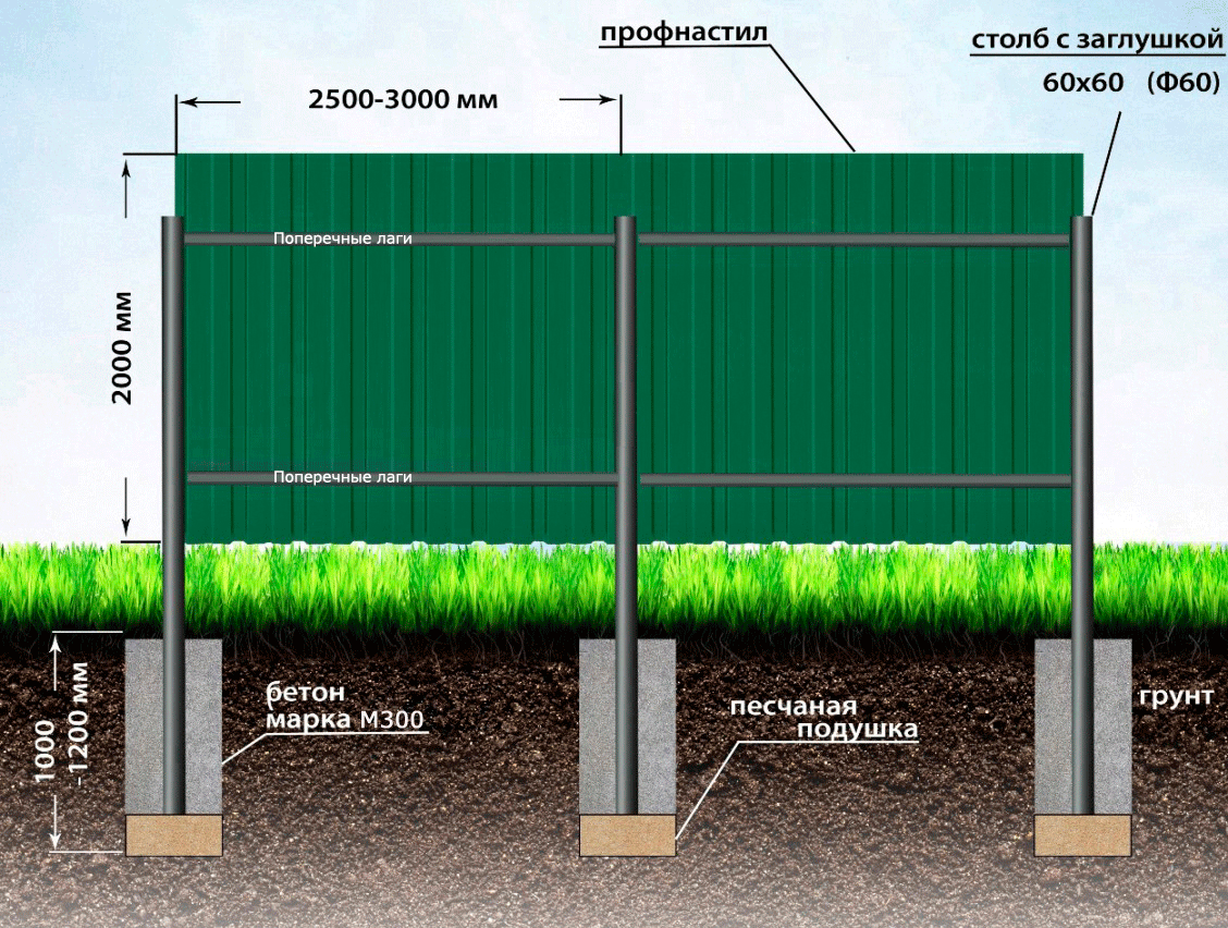 Пошаговая инструкция по установке забора из профлиста