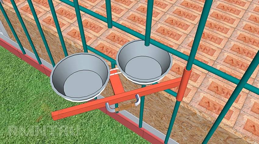 Кормушку с поилкой лучше поставить не на пол, на 20-ти сантиметровую подставку.