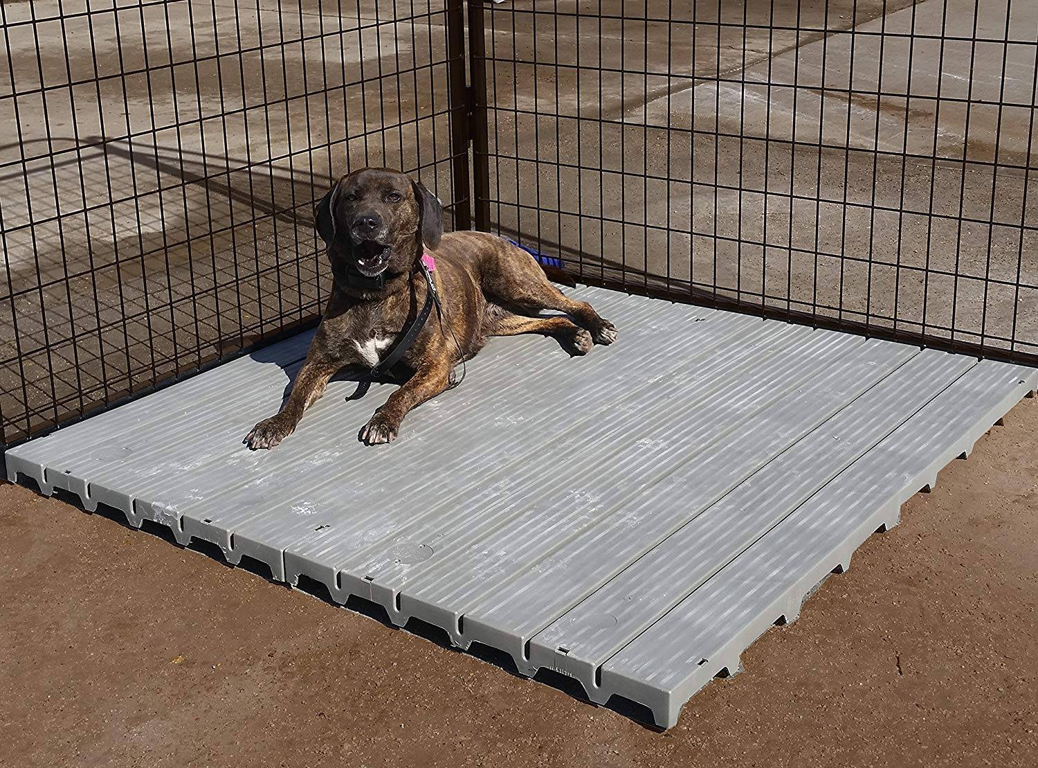 Важно! Асфальт, бетон и другие подобные покрытия могут нанести вред когтям и суставам собаки. Доски нужно обработать специальными средствами для защиты от плесени и гниения, а также позаботиться о том, чтобы на них не было сучков и гвоздей, ведь собака может пораниться. Можно сделать деревянный настил в виде щитовой конструкции