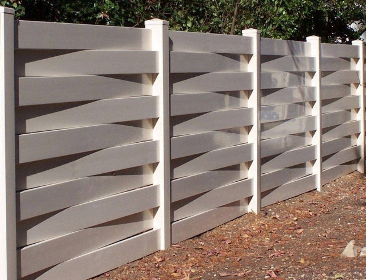 ПВХ штакетник. В нем элементы могут устанавливаться и с промежутками, и без таковых. Крепление может быть вертикальным, наклонным, в шахматном порядке.
