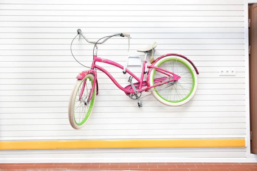 В магазинах спортинвентаря часто продаются специальные крючки, которые помогут вам сэкономить место и прекрасно подойдут для хранения велосипеда в гараже. Бывают и специальные стойки, которые будут держать велосипед в подвешенном виде. Они крепятся к стене, опираясь на пол, это позволяет закрепить не один велик, а несколько сразу.