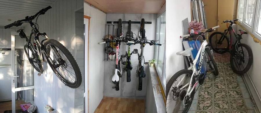 Можно повесить велосипед на специальные крючки или гвозди большого размера. Вешать его стоит только за раму. Следите за тем, чтобы на него не попадала вода от одежды, которая сушится на балконе, или талая вода, связанная с повышением уличной температуры.