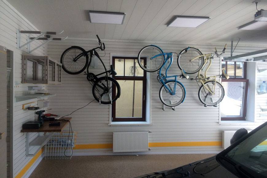 Если велосипедов два, а гараж по-прежнему один, то вопрос их хранения становится в два раза актуальнее. Два горизонтальных кронштейна для велосипеда, размещенные один над одним — вот возможное, но далеко не единственное решение, которое мы можем предложить.