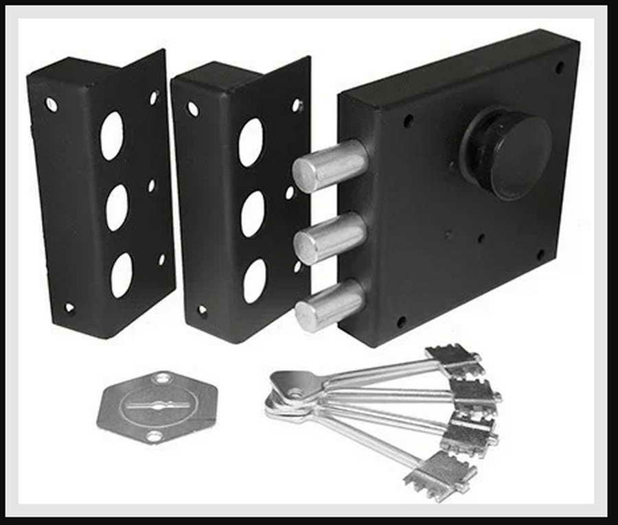 Большие врезные замки могут быть оборудованы дополнительным креплением для вертикальных тяг, которые позволят прочно зафиксировать массивную дверь или ворота по всей высоте створки двери. Удачным вариантом будет комбинация основного и дополнительного механизмов разного типа замыкания для более надежной защиты.