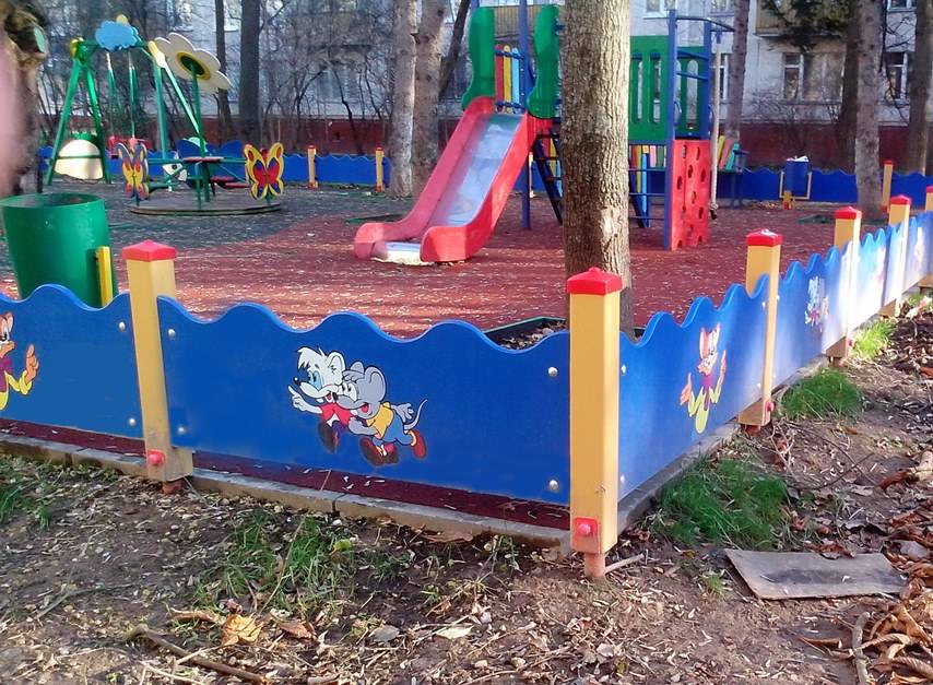 - Обычно детские площадки расположены во дворах жилых домов, недалеко от автопарковок и дороги. Забор защитит территорию для детей от въезда автомобилей.
