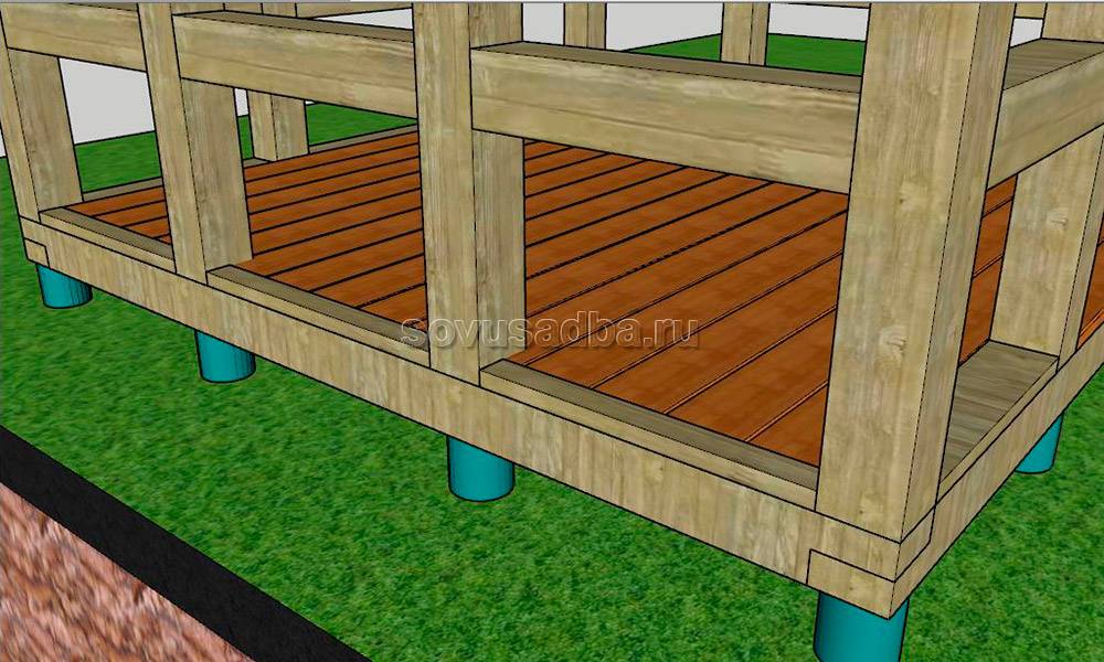 4Пространство вокруг опор заливается цементным раствором. В качестве опор могут служить и уже готовые бетонные блоки, кирпич или камень.
