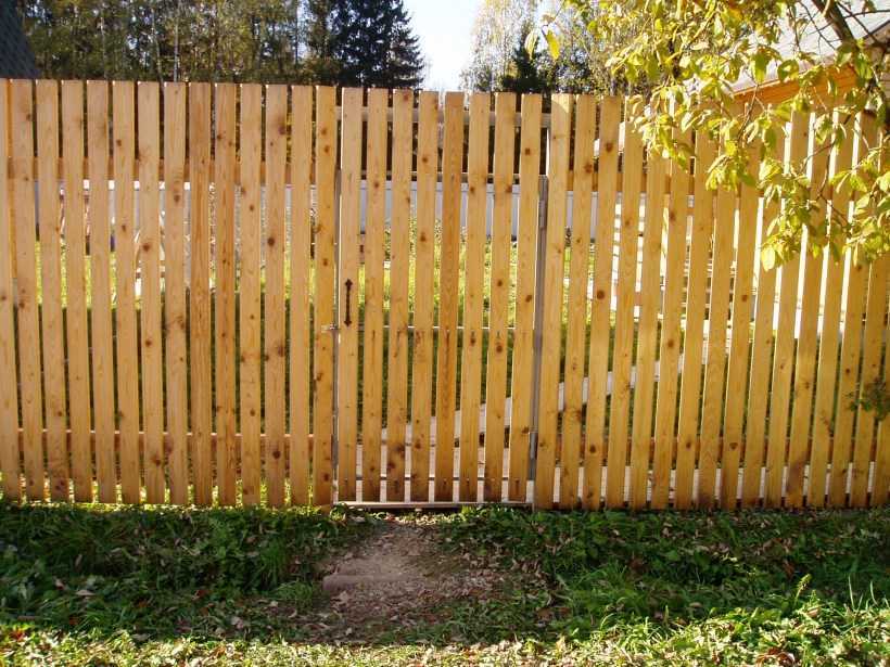 Наиболее распространенными являются заборы с вертикальными планками. Установка таких деревянных заборов осуществляется на ригели, то есть горизонтальные элементы, изготовленные из стальных профилей или деревянных кромок.