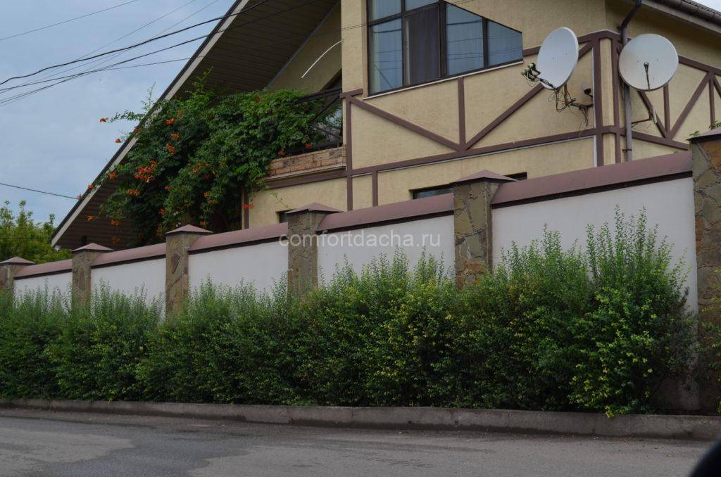 надежность и прочность. Чтобы защитить жилье от проникновения злоумышленников, выбираются высокие (до 3 м) изделия из камня, кирпича, профнастила, бетона. Если на участке нет ничего ценного, или район спокойный, или охраняемый, можно установить изделия из поликарбоната, шкакетника, сетки;