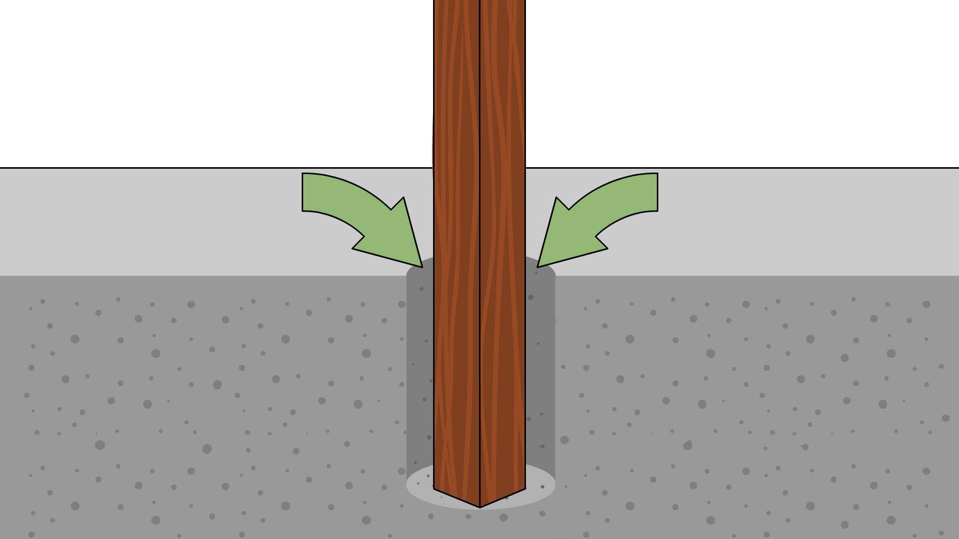 Опорные столбы должны быть надежно забетонированы. Полотно из досок достаточно тяжелое. К тому же оно обладает высокой парусностью, поэтому ограда должна выдержать сильные порывы ветра.
