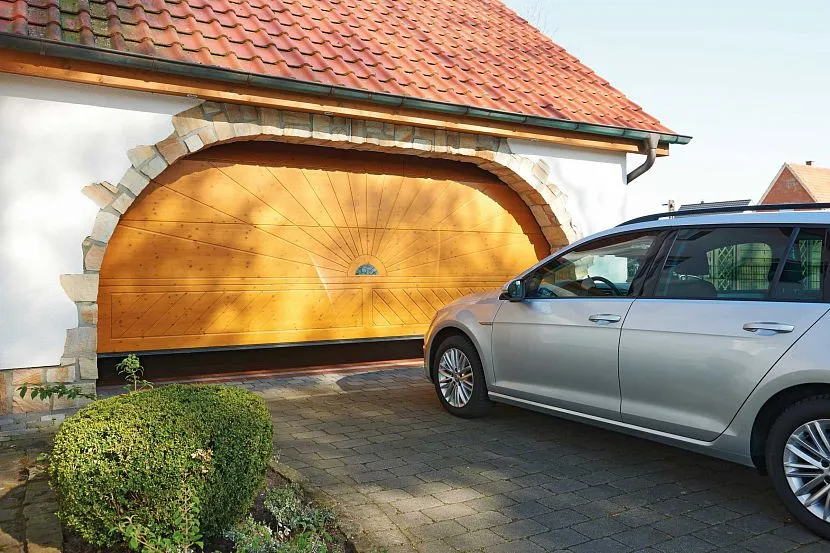 Конструкция гаражных ворот, в которой в запирающие полотна из подвижных секций скользят по направляющим желобам к потолку, проста и функциональна. В них отсутствуют створки, отбирающие дефицитное пространство от пригаражной территории, ими невозможно прищемить палец, их сложнее взломать – отсутствуют петли, рычаг. Удобство пользования многократно повышает автоматика – электрический привод, управляемый с помощью пульта.