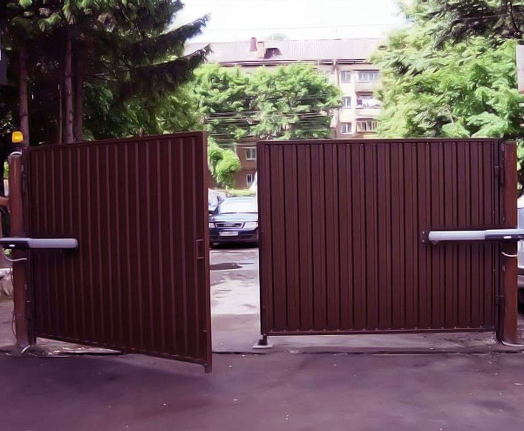 Если планируются распашные ворота с автоматикой, их построение необходимо производить, учитывая установку электропривода по сопутствующей комплектации схеме.