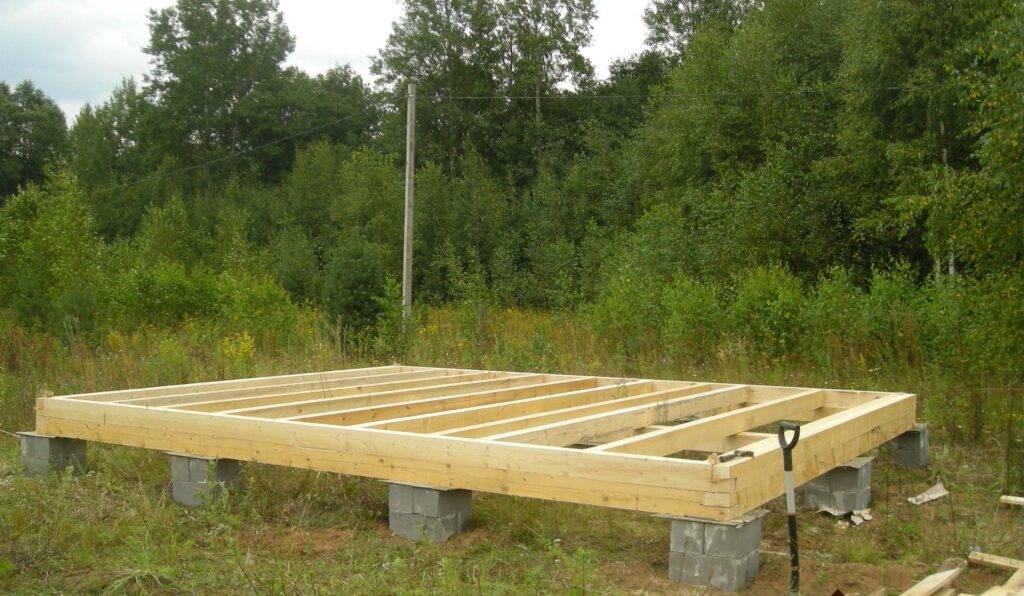 Как правило, обходятся столбчатым фундаментом. Это основание представляет собой систему столбиков из шлакоблоков или кирпичей, установленных колодцем (два кирпича вдоль, два поперек). Схему расстановки столбиков рассчитывают исходя из размеров бытовки и особенностей проекта — если планируется создание просторной террасы, то количество столбиков увеличивается.