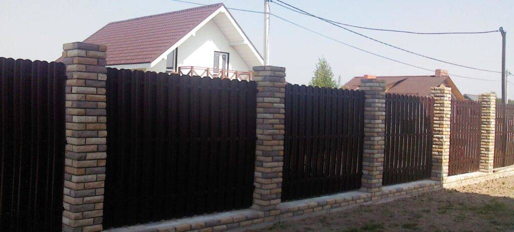 Часть заборов можно полностью изготовить из одного материала, но часто их комбинируют. Например, профильную металлическую трубу также используют при строительстве деревянных и пластиковых заборов, а у кирпичного забора она служит в качестве армирующего элемента столба. Поэтому ниже приведен список материалов, которые идут на изготовление пролетов: