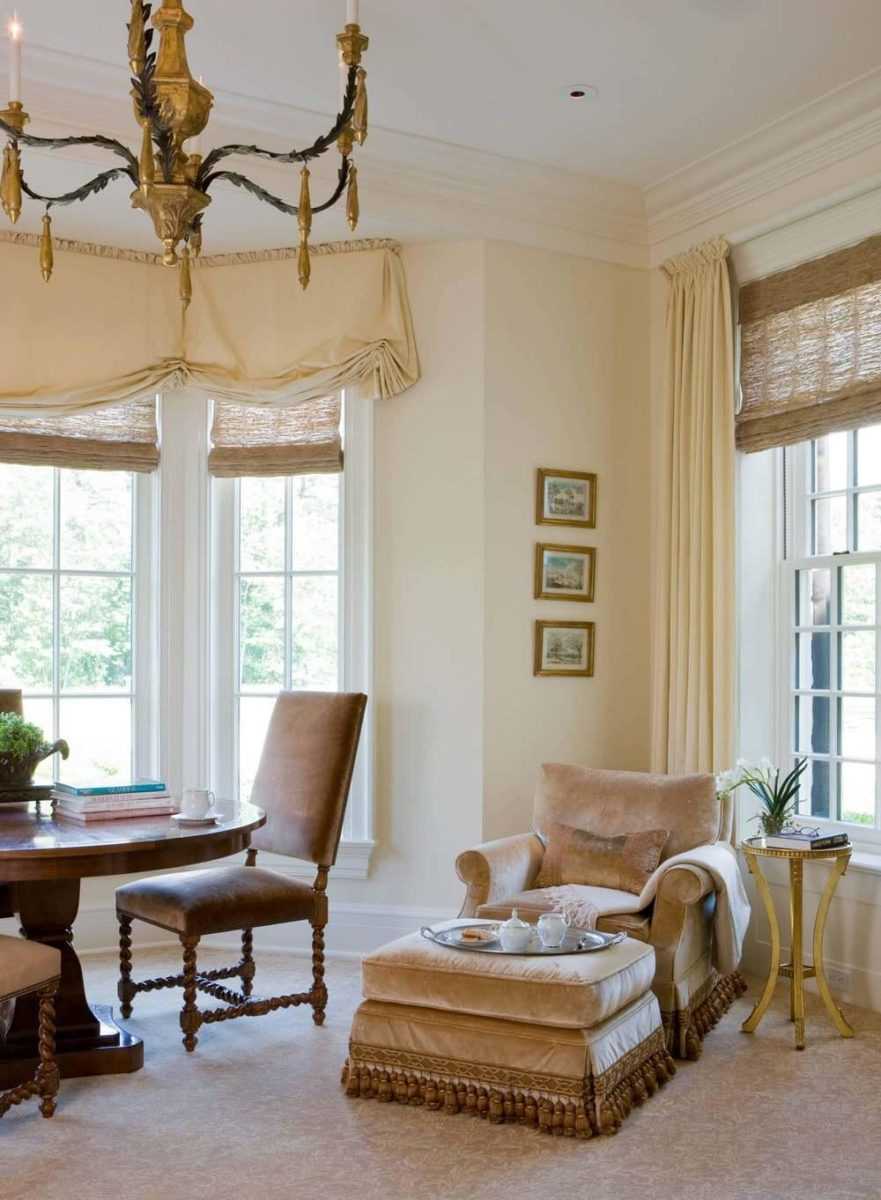 На фото английских штор видно, что внешне они представляют собой полотно, поднимающееся и опускающееся с помощью шнура. Глубокая складка, образующаяся при их поднятии, а также мелкие складочки по краям в форме бантов придают лондонскому текстилю особую красоту. При подобном обрамлении окна приветствуется использование дополнительных декоративных элементов – кистей или бусин.