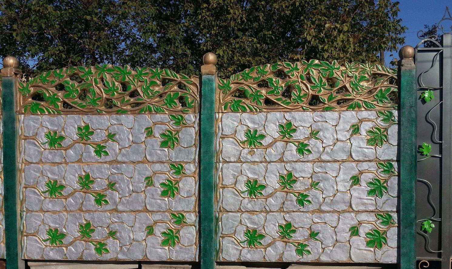 Хорошо скрываются и продольные швы между секций. Для этого шов стараются размещать по неровным стыкам якобы каменной кладки, результатом чего становится декоративное ограждение, словно сложенное из природного камня. Декорированию подлежат и бетонные столбы, отливаемые в виде всевозможных фигур.