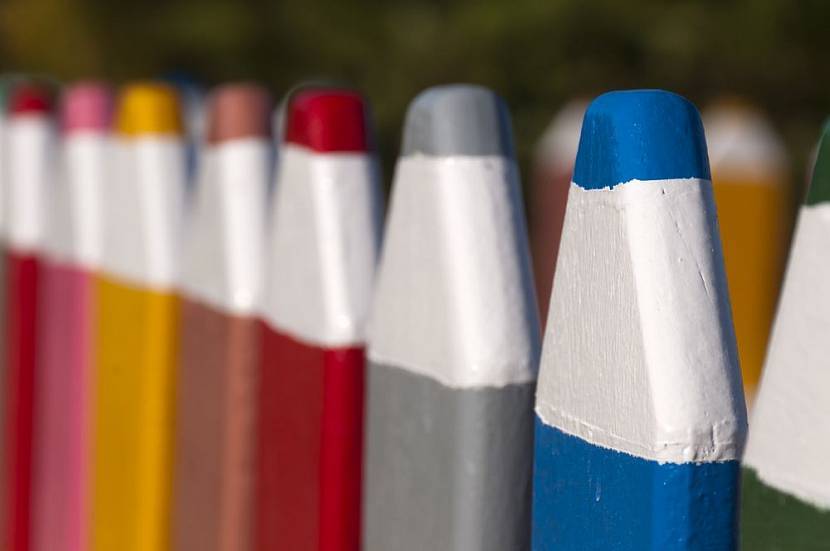 - Если же доски стоят плотно друг к другу, то есть смысл сделать имитацию пачки карандашей – в данном случае и особых художественных навыков не потребуется. Достаточно выполнить контуры для разных зон и покрасить их в разные цвета.