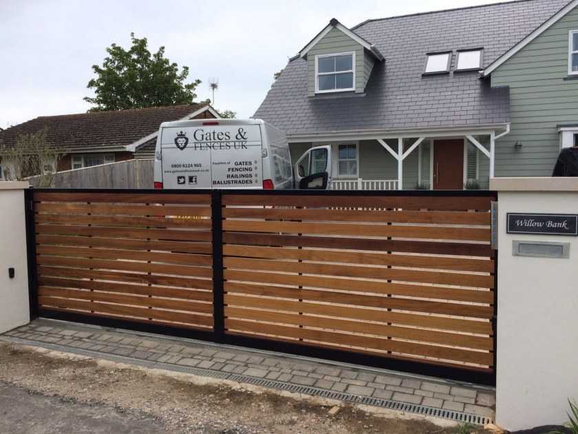 Свое название конструкция получила из-за способа открывания. Полотно ворот перемещается вдоль забора, то есть в плоскости воротного проема, тем самым занимая меньше места.