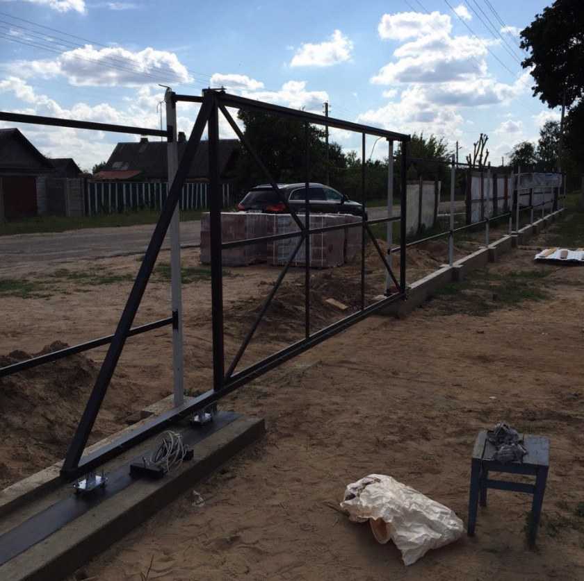 Дальше при установке ворот своими руками можно приступать к сборке необходимых консолей откатных ворот. Для этого могут потребоваться профильные трубы. Размеры можно подбирать самостоятельно в соответствии с масштабом конструкции.