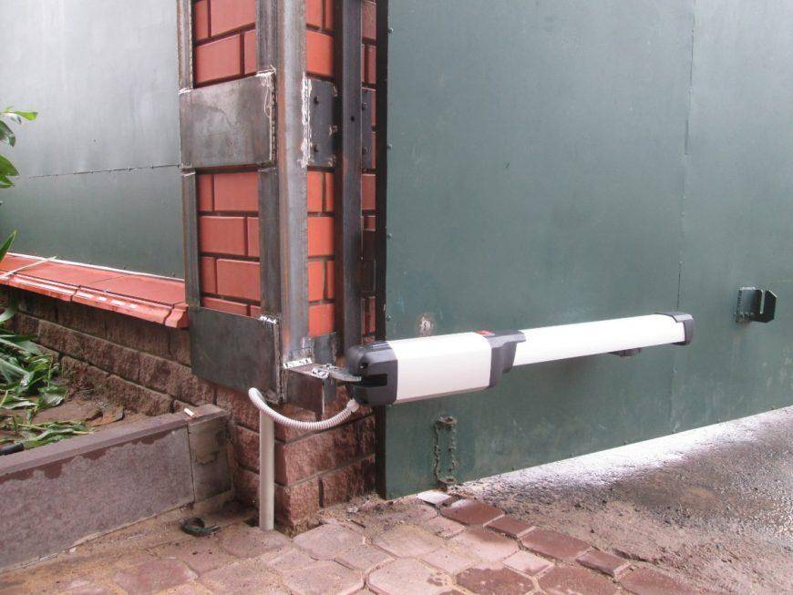 - Самодельные металлические ворота позже можно оборудовать автоматикой. В настоящее время на рынке можно найти несколько вариантов приводов.