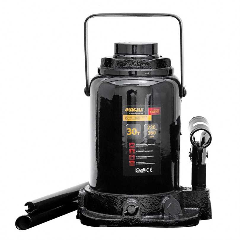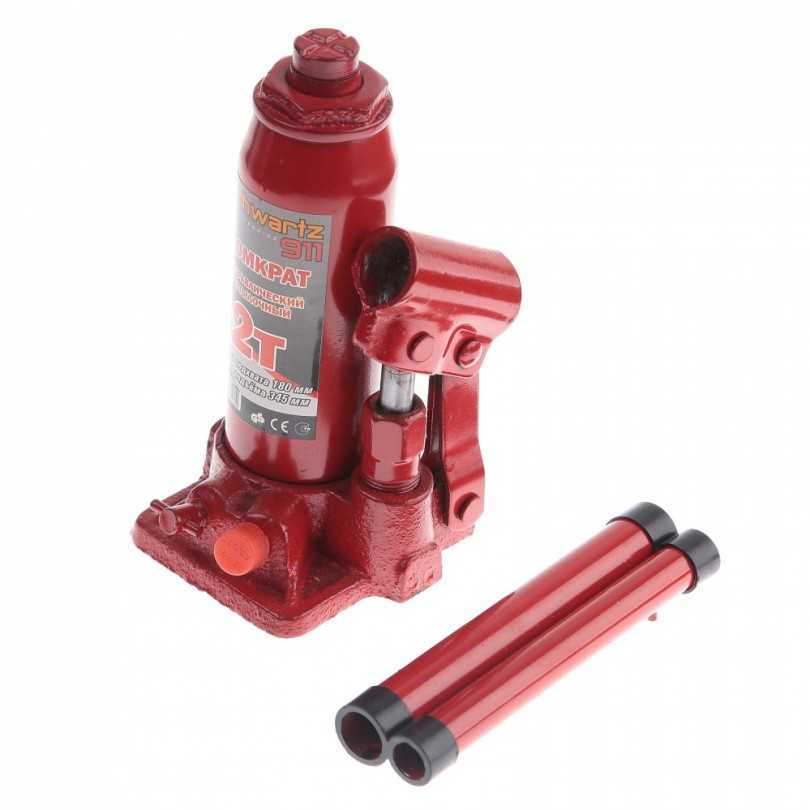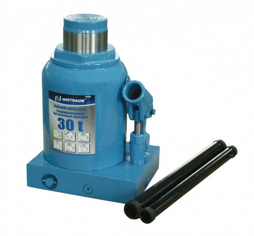 Распространённым видом гидравлических домкратов являются бутылочные изделия. Основные различия состоят в габаритах, рабочей грузоподъемности. Чем больше корпус домкрата, тем выше его характеристики и способность к поднятию грузов, соответственно и цена. Выносливость и устойчивость делают такой тип подъемных средств наиболее используемыми в автосервисах. Конструкцией предусмотрен защитный клапан, который не разрешает продолжать работы при массе объекта, превышающей 25% от заявленной.