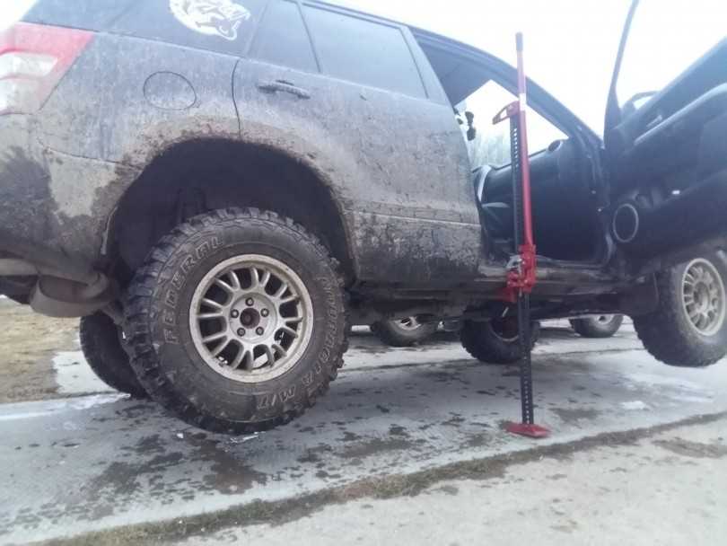 Что бы зафиксировать домкрат, в его основании просверлили два отверстия на 8-10мм, а в основании приваренной платины под домкрат, установлены два направляющих штифта. Что позволяет надежно закреплять домкрат и в тоже время свободно его изымать.
