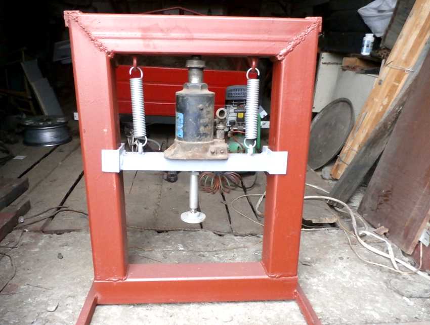 К нижней части домкрата необходимо приварить конструкцию в виде буквы П. Упор домкрата, который снимается, должен передвигаться по направляющим, а также передавать давление на деталь, которая обрабатывается.