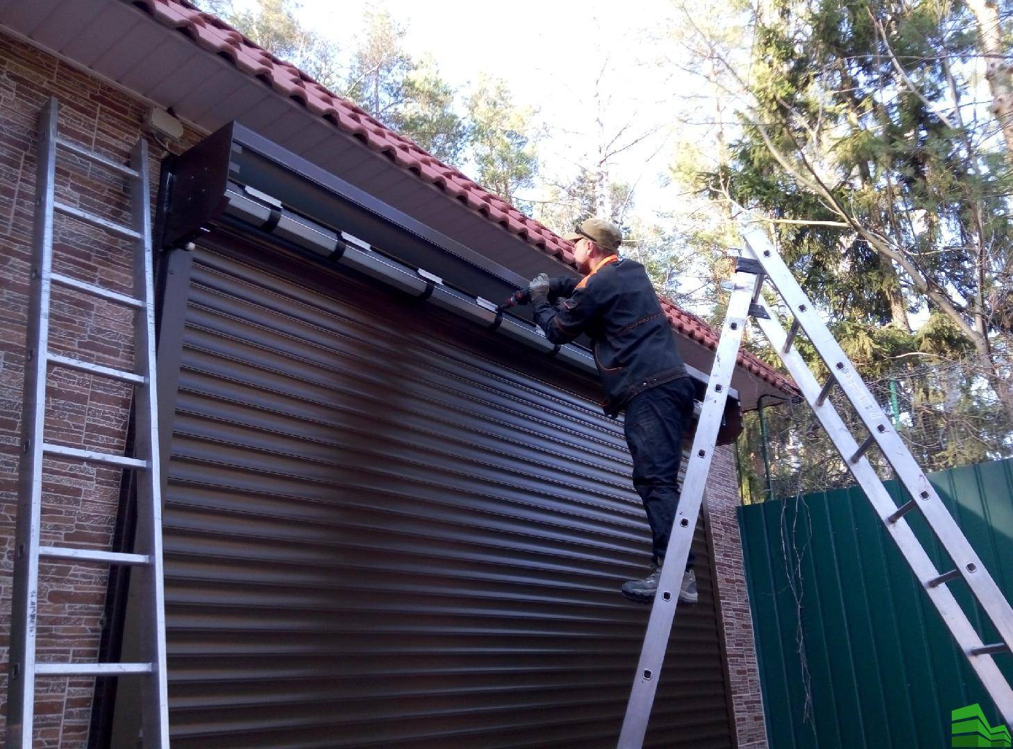 Установка роллетных ворот, ширина которых выше полутора метров, производят с помощником, потому что самому здесь будет очень неудобно справляться.