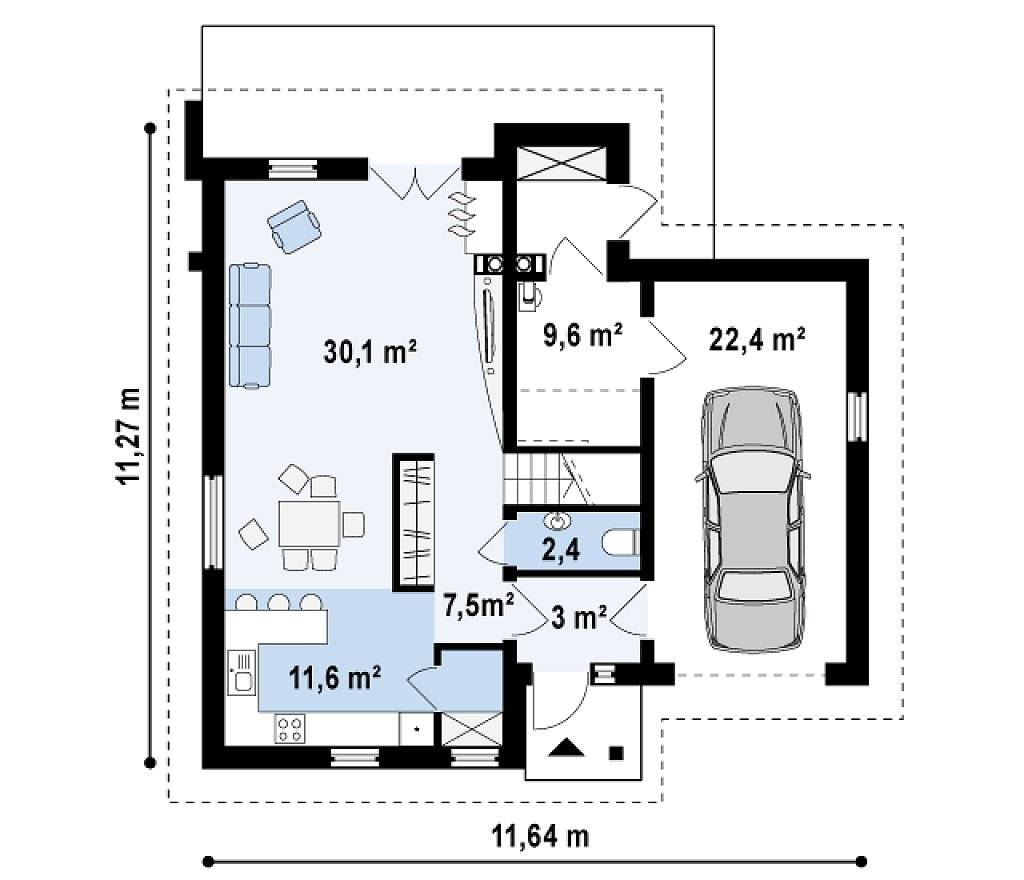 К недостаткам, которые могут иметь проекты одноэтажных домов с гаражом с подвалом можно отнести: