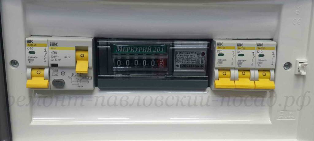 Как правило, фазный провод, обычно коричневого цвета, или тот, на котором индикатором определяется наличие фазы, заводится на вход электросчетчика, размещенного в щите электропитания, а затем на автомат защиты, размещенный в том же щите.После этого электросчетчик пломбируется для исключения воровства электроэнергии.