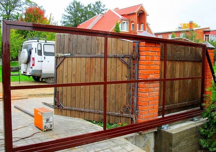 Переходим к основному разделу статьи – как самому сделать откатные ворота для дачи, то есть будем разбираться непосредственно с процессом сборки. В первую очередь надо изготовить раму. Для этого используется один из видов металлопрофиля. Сегодня мастера свое предпочтение отдают профильной трубе. С ней проще работать, плюс, этот материал обладает невысокой массой, но высокой несущей способностью.
