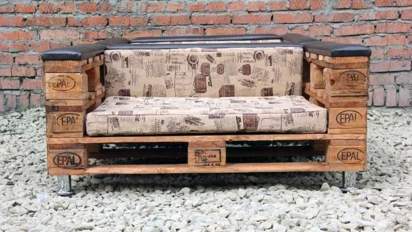 Если мебель из деревянных поддонов будет стоять на улице, декор не должен «бояться» влаги, ветра, низких температур, жары. Изделия, которым предстоит находиться в доме, украшают тканью, подушками. Сиденья диванов и кресел можно обить поролоном, сверху обтянуть кожзамом или рогожкой. Удобны съемные чехлы. Их шьют из легко отстирывающейся ткани в тон другой имеющейся дома мебели.
