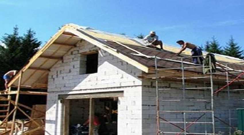 Теперь нам нужно установить крышу в гараже. Она должна защищать строение от атмосферных осадков и удерживать тепло внутри. Стоит учесть, что крыша рассчитывается под небольшим углом, дабы с нее стекала вода. Начинаем установку деревянных стропил, которые нужно прикрепить гвоздями или скобами. Теперь к стропилам прибивают доски, они будут служить основой для покрытия крыши. На доски нужно постелить и прикрепить слой гидроизоляции в виде рубероида, шифера или мягкой черепицы.