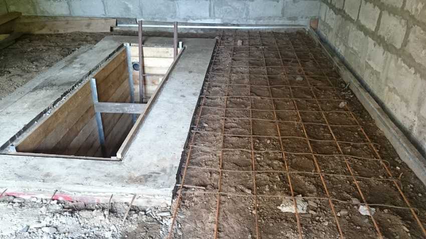 Пол в гараже подвержен большим нагрузкам и поэтому он должен быть бетонным. Сначала на ровную поверхность засыпается подушкой из песчано-щебневая смеси и тщательно трамбуется. Затем заливается слоем бетонного раствора примерно 10 см толщиной.