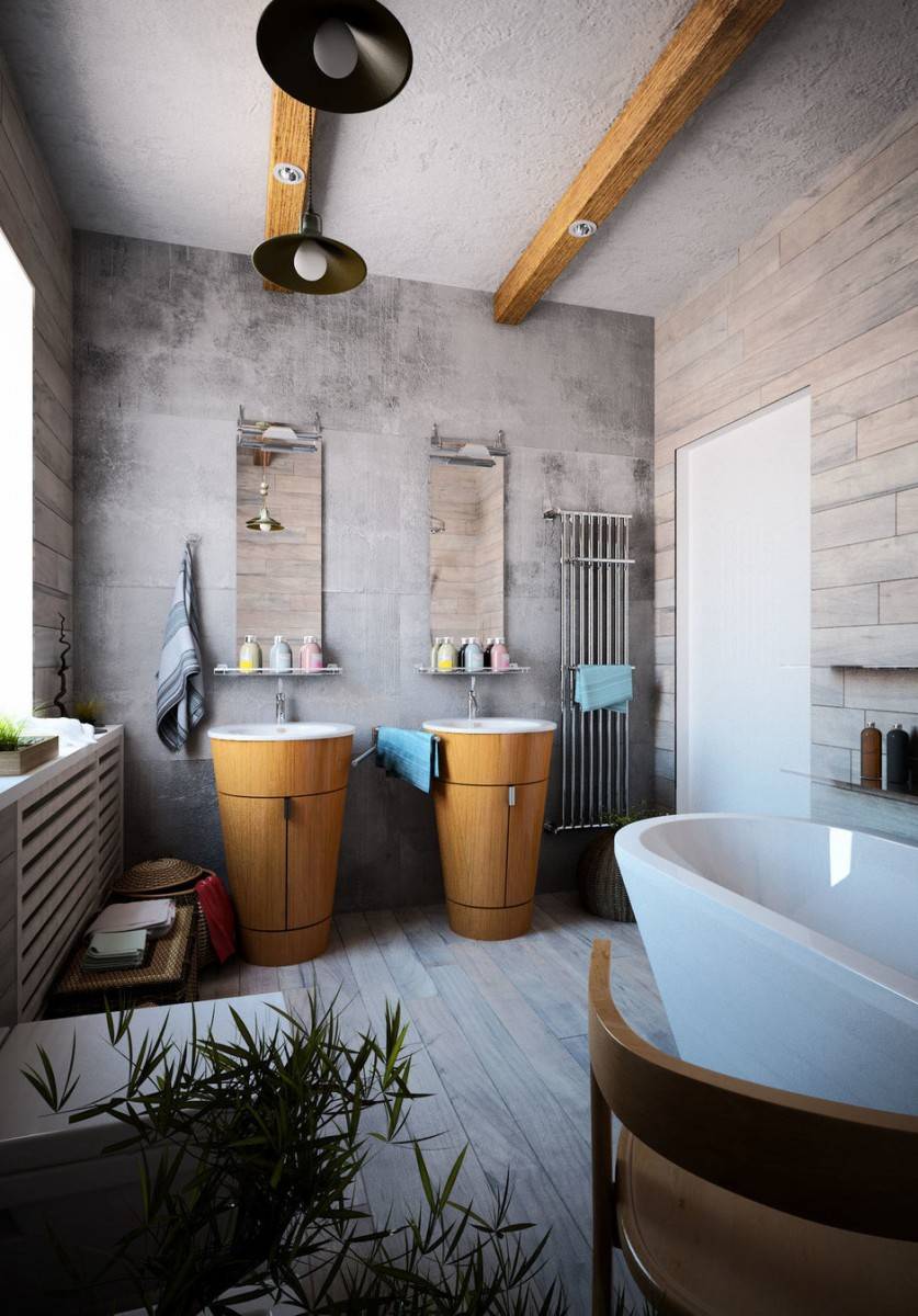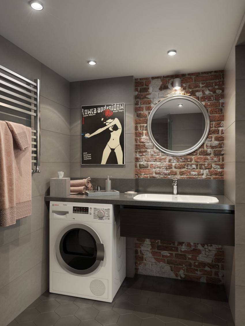 Требования к мебели для ванной в стиле лофт аналогичны — строгость, простота, минимализм, индустриальная цветовая гамма. Это тот самый случай, когда старый шкафчик для умывальных принадлежностей будет не хламом, требующим замены, а главной фишкой оформления.