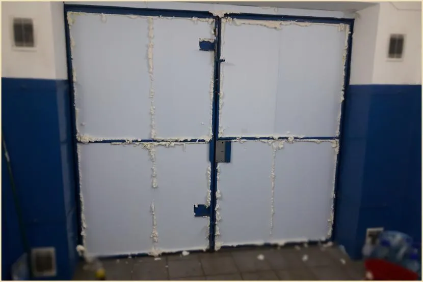 Утепление металлических распашных ворот осуществляется с использованием материалов синтетического происхождения или пенопластовых (пенополиуретановых) плит, которые фиксируются на поверхности створок с помощью специального клея. Для закрытия утеплительных плит может использоваться любой подходящий по фактуре декоративный материал.
