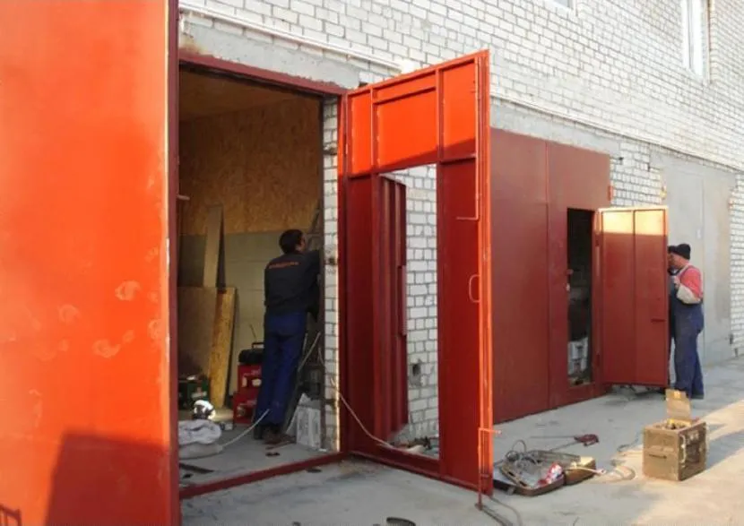 Гаражные ворота проектируются достаточно широкими Источник svarka-sibir.ru Вторым по значимости требованием к дверной группе является защита помещения от атмосферных осадков. Обшивку приваривают к каркасу. Для лучшей герметичности края створок покрывают уплотнительной лентой.