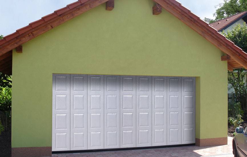 Откатные конструкции секционного типа часто устанавливают в гаражах небольшого размера. Однако их можно применять и для защиты просторных помещений. В последнем случае устанавливают две створки. Такие ворота сдвигаются в сторону и размещаются параллельно боковой стене. Их удобно устанавливать и эксплуатировать.