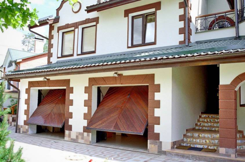 - у подъемных конструкций может быть абсолютно любая внешняя отделка. Здесь все во многом зависит от ваших предпочтений. Правильно подобрав материал, можно получить ворота эстетичного вида, которые станут прекрасным дополнением к вашему гаражу.