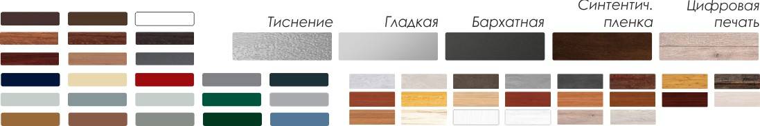 оттенков идут за небольшую доплату, так же доступно 6 цветов под дерево, в дорогом пленочном покрытии, и