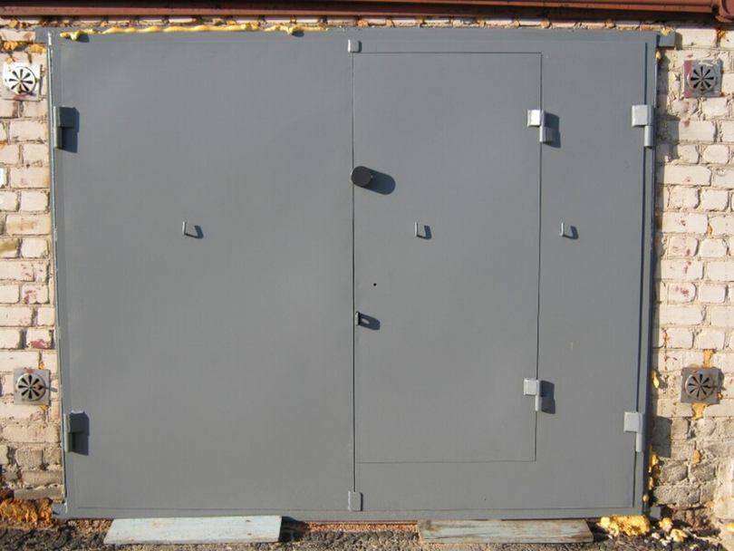 - каркас полотен из пятидесятого уголка и листового металла толщиной от двух до трех миллиметров с усиленными наружными петлями (если речь идет о распашной конструкции, как наиболее популярной и простой в исполнении).