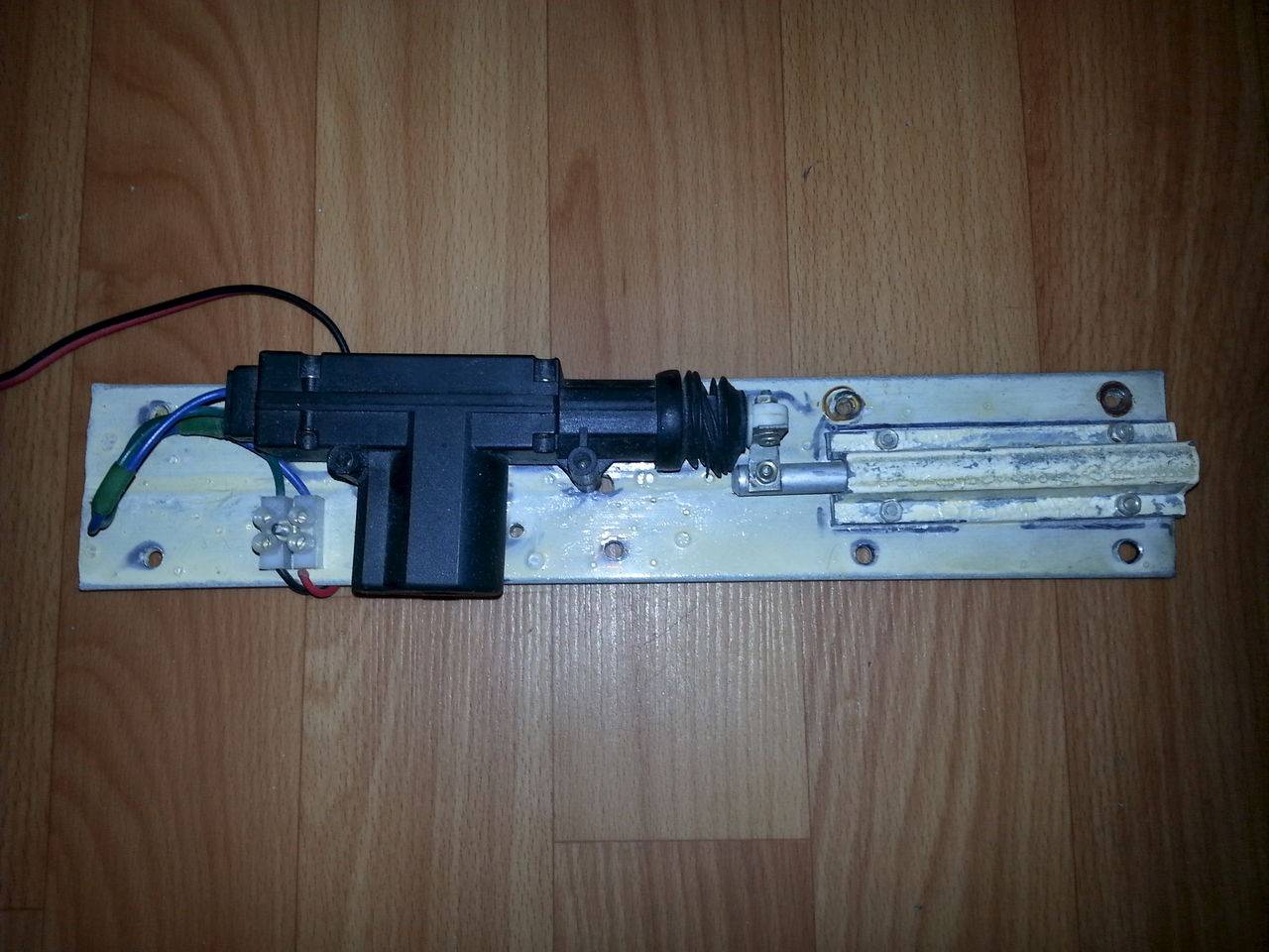 - В задвижку ввинчиваются два винта диаметром М4, длиной около восьми миллиметров. Эти винты являются ограничителями хода задвижки, желательно под их головки поставить пружинные шайбы.