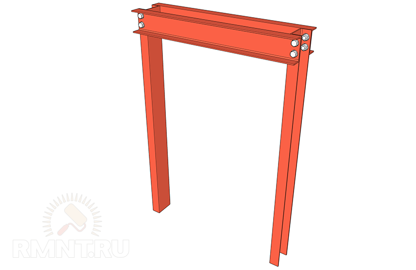 Монтаж балки понадобится для большей жесткости | Опорный элемент можете придумать сами, в зависимости от воображения. Наличие перекладины снизу обязательно, для жесткости. |
