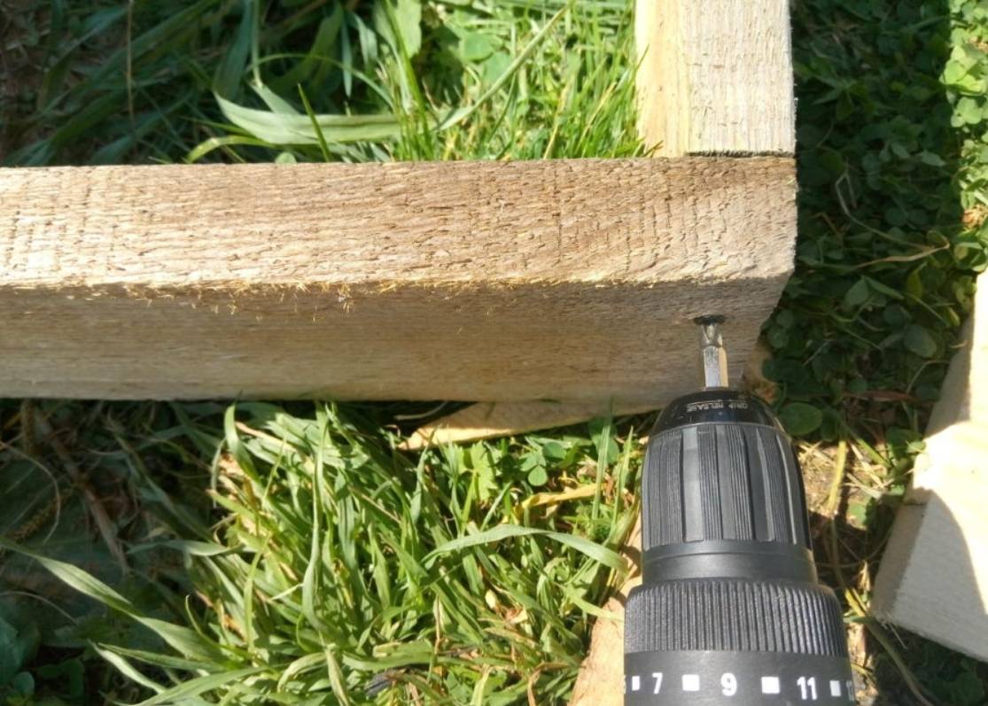 К краям коротких досок прибейте или прикрутите саморезами столбики. На длинные доски также прибейте бруски